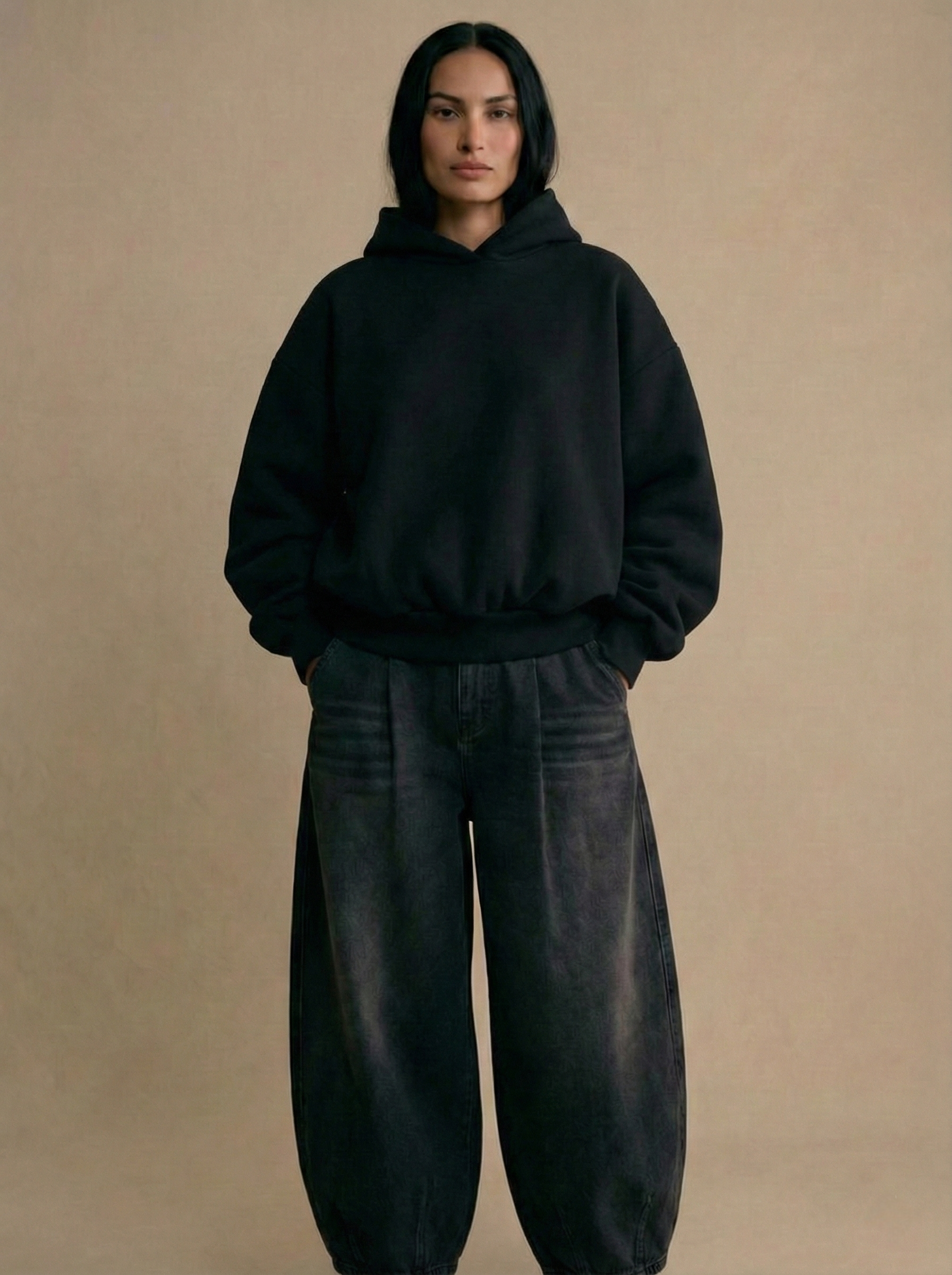 Front side flat lay shot of Black Oversized Cotton Hoodie 420 GSM